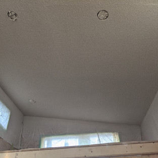 Because the inside of the house has many small, somewhat cramped spaces, spraying it with cork was to pose a problem; spray back, unevenness, and vapour issues would all make spraying the interior difficult, messy, and unpleasant. Instead, Randy from Innovative Cork suggested only spraying the ceiling, then trowelling the walls with cork - an application process common in Europe. Obviously I deferred to Randy's expertise, because, well, I'm the last person to call myself an expert in anything (except maybe selecting the exact right size of Tupperware container for leftovers...weird talent, but I'll take it).