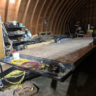 They built for a me an all-steel frame with aluminum flashing on dual axles, topped with a 3/4" plywood sub-floor. It is rated for 14,000 lbs, and the trailer itself weighs about 1,500 lbs. Fingers crossed that my house stays within the weight limits!
